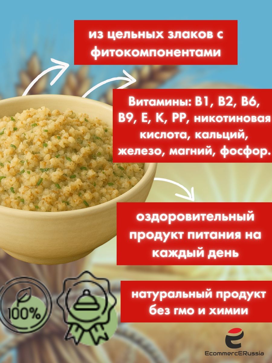 Высокое содержание растительного белка и натуральных витаминов делает продукт отличным выбором для активных людей, ценящих сбалансированное питание. Каша прекрасно сочетается с молоком, йогуртом, кефиром или может использоваться как ароматная добавка в суп.