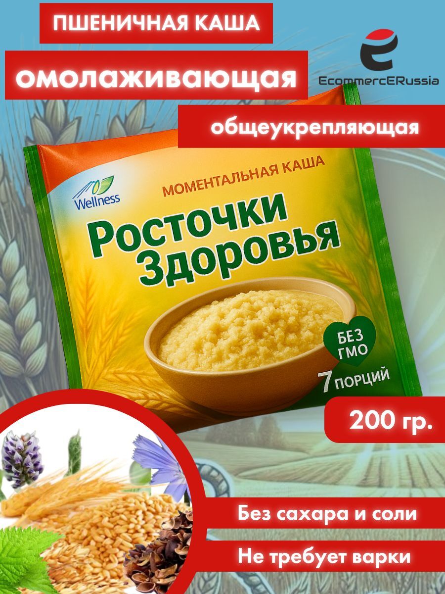 Каша быстрого приготовления «Омолаживающая» от бренда «Росточки здоровья» — это натуральный фитопродукт, созданный на основе пшеницы, корня солодки, цикория, листа крапивы и муки кедровой скорлупы.