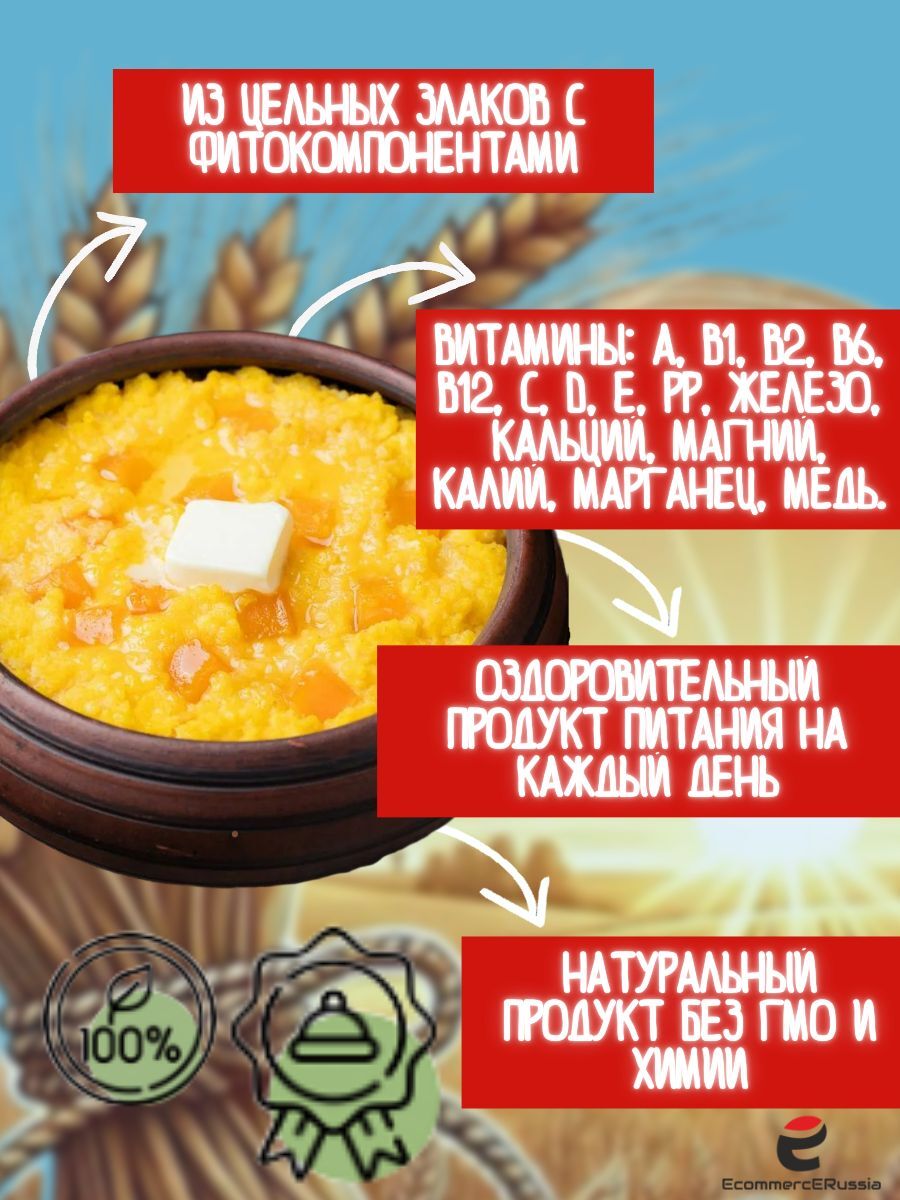 Не содержит глютен, сахар, ароматизаторы, красители и ГМО. Подходит для постного, диетического и вегетарианского рациона. Просто залейте водой, молоком или йогуртом — и через 3–5 минут получите полезную кашу с насыщенным вкусом и природной пользой.