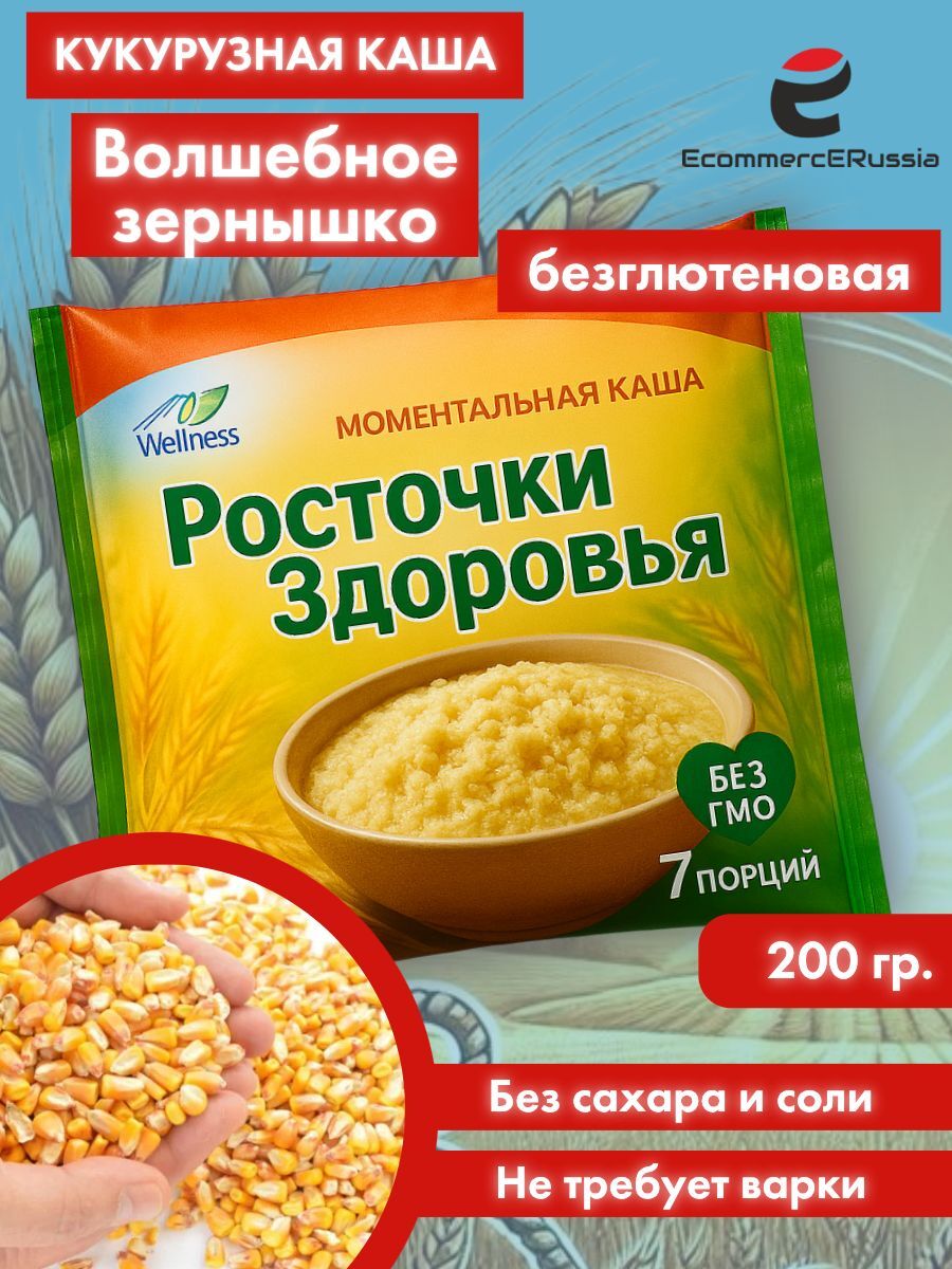 Натуральный кукурузный вкус в сочетании с витаминно‑минеральным комплексом помогает поддерживать энергию и насыщение в течение дня. Каша прекрасно сочетается с молоком, йогуртом, кефиром или может использоваться как питательная добавка в суп.