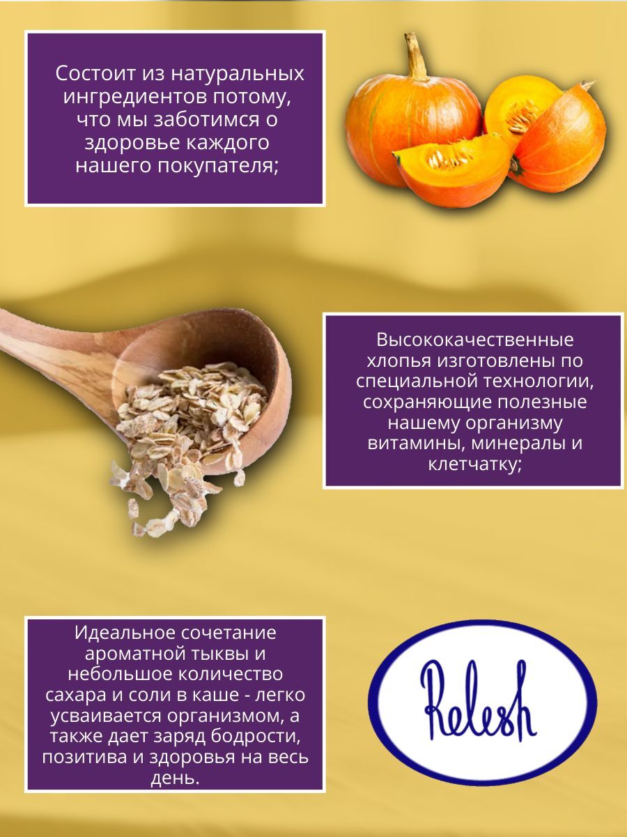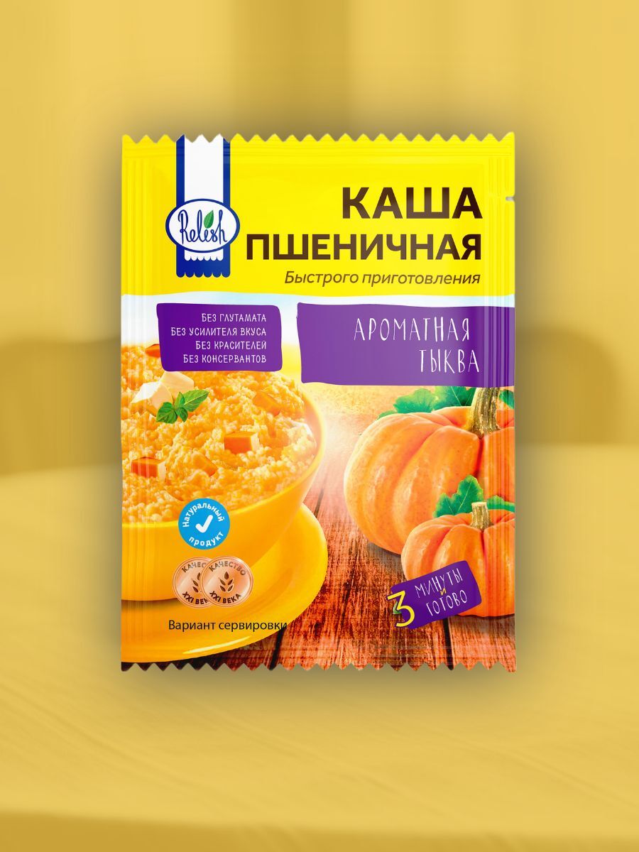 Каша быстрого приготовления "Relish" пшеничная с ароматной тыквой — вкусно, удобно и без варки.
