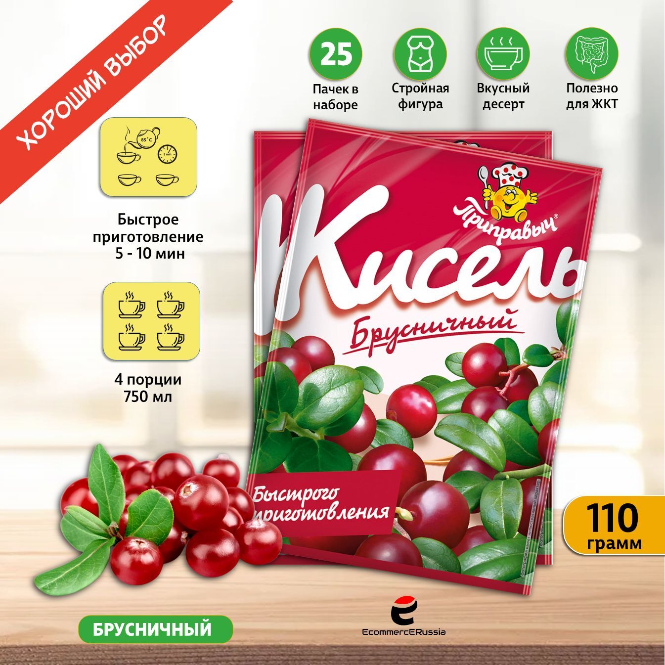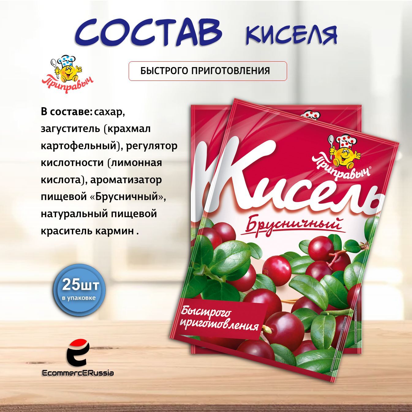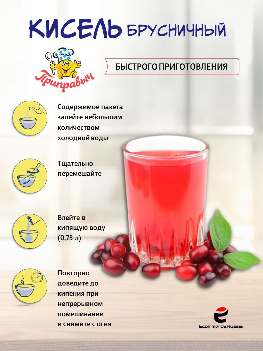 Кисель растворимый в пакетиках – это идеальное решение для занятых людей, которые не хотят тратить много времени на готовку, но при этом стремятся получать качественные и вкусные блюда. Кисель быстрого приготовления «Приправыч» отличается насыщенным вкусом брусники которая известна своим богатым содержанием витаминов и антиоксидантов.