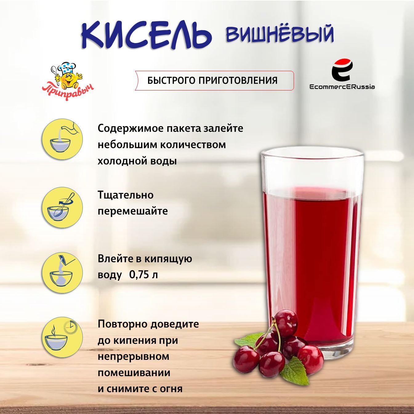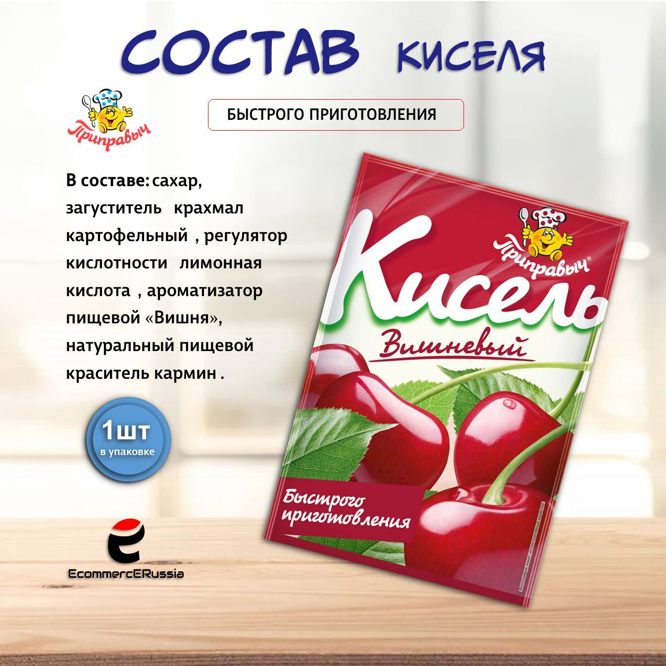 Кисель растворимый в пакетиках – это идеальное решение для занятых людей, которые не хотят тратить много времени на готовку, но при этом стремятся получать качественные и вкусные блюда. Кисель быстрого приготовления «Приправыч» отличается насыщенным вкусом вишни которая известна своим богатым содержанием витаминов и антиоксидантов.