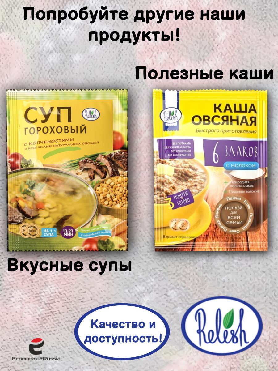 Приготовление киселя не займет много времени: достаточно всего лишь развести порошок в горячей воде,довести до кипения и через несколько минут вы получите аппетитное и полезное лакомство. Это делает его удобным выбором для тех, кто ценит свое время, но не хочет жертвовать качеством и питательностью. Кисель Relish идеально подойдет для завтрака, а также станет отличным вариантом для перекуса в течение дня.