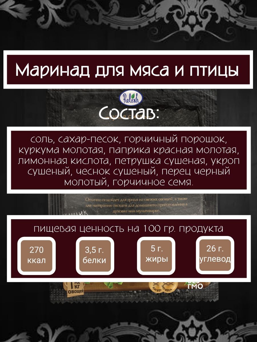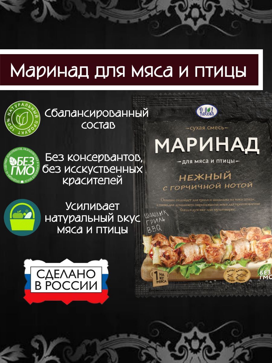Relish – маринад, который вдохновляет на кулинарные открытия! Откройте для себя маринад Relish с утонченной горчичной нотой – ваш универсальный помощник в создании блюд, которые восхищают вкусом и ароматом. Этот нежный маринад идеально подчеркивает естественную сочность мяса и птицы, делая каждое ваше блюдо настоящим кулинарным шедевром.