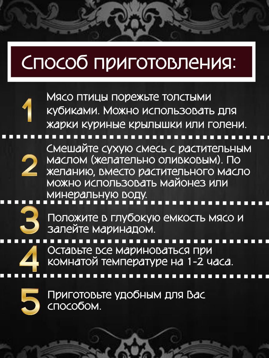 Соль, сахар, горчичный порошок, куркума молотая, паприка красная молотая, лимонная кислота, петрушка сушеная, укроп сушеный, чеснок сушеный, перец черный молотый, горчичное семя.