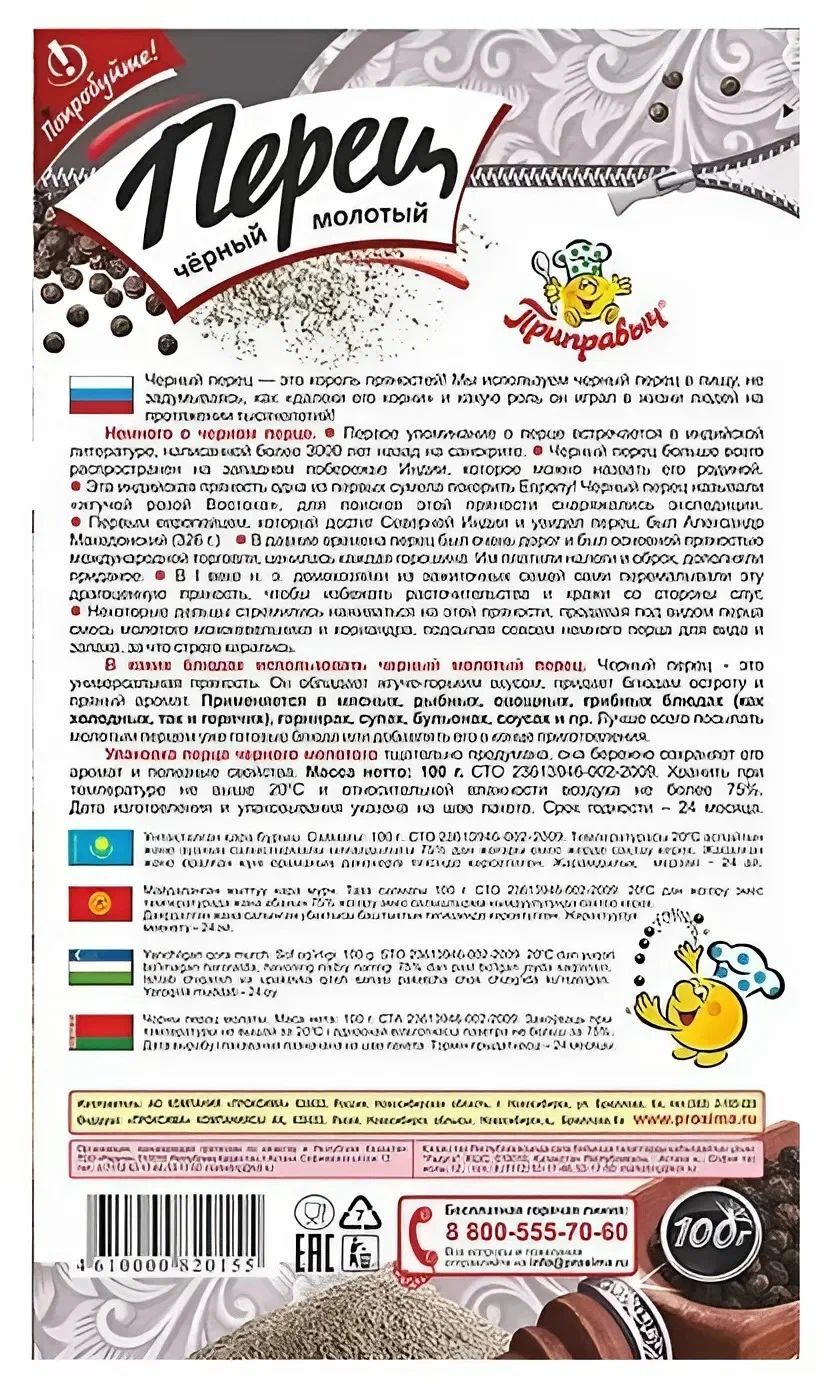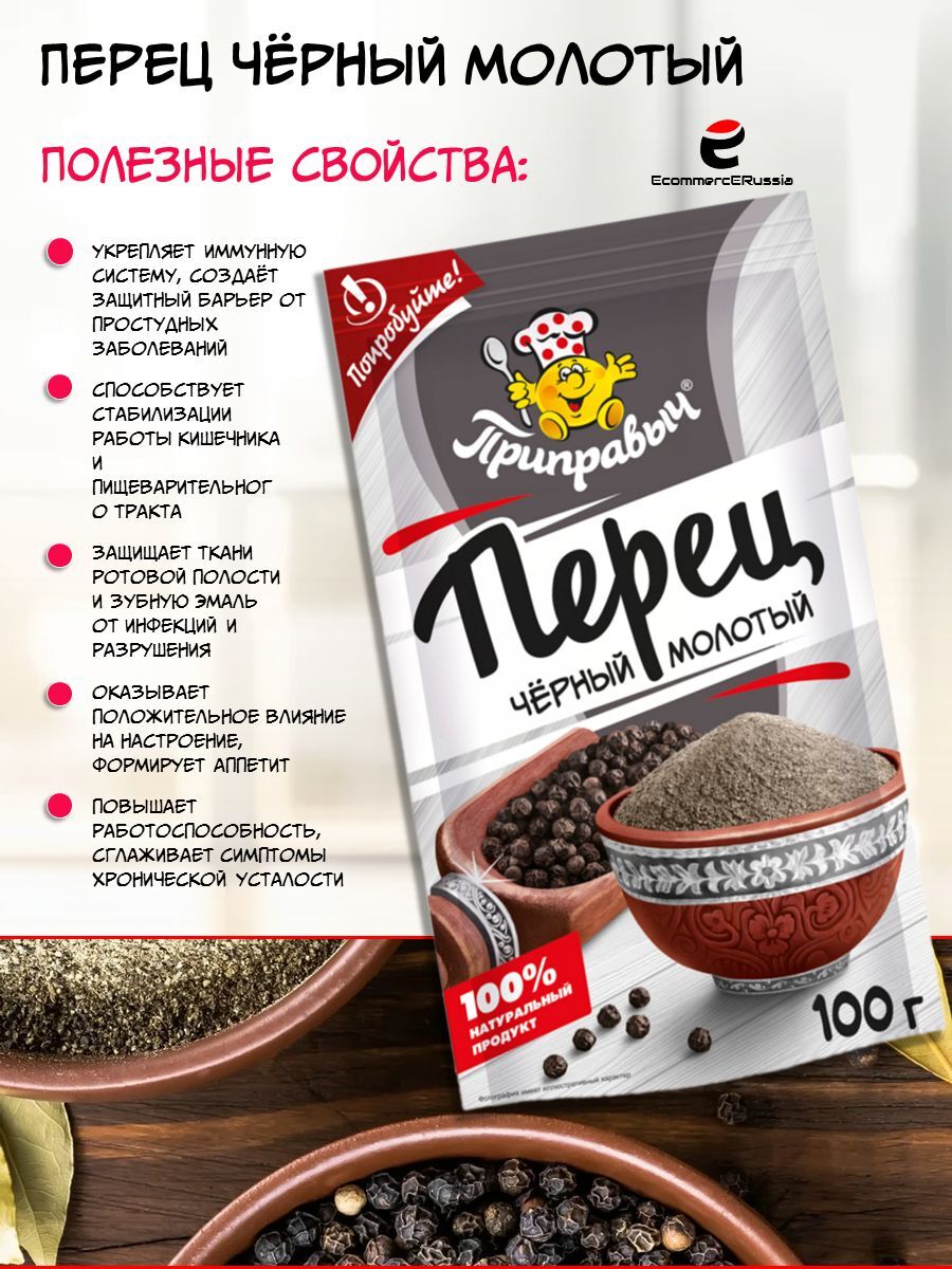 Бренд "Приправыч" зарекомендовал себя как производитель качественных продуктов питания, которые отвечают самым строгим стандартам. Перец черный молотый проходит тщательную обработку, что гарантирует сохранение всех его ароматических и вкусовых свойств. Вы можете быть уверены в чистоте и натуральности продукта, так как он не содержит искусственных добавок.