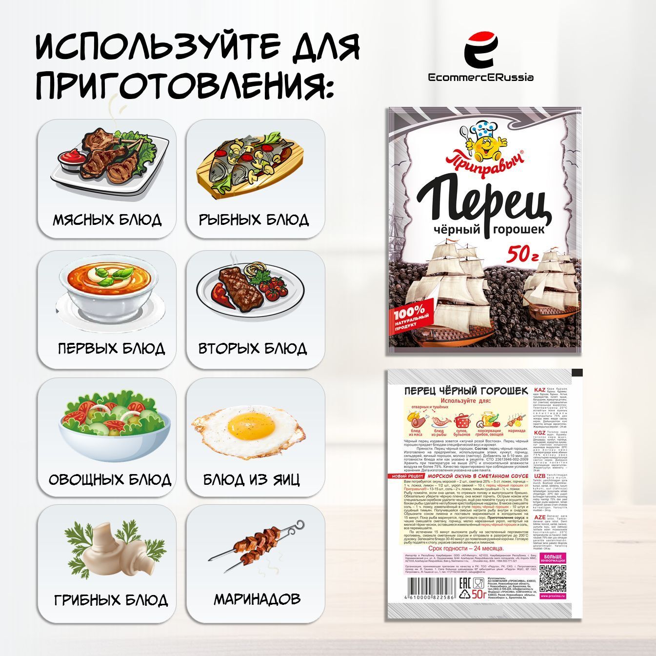 Приправыч предлагает продукт, который соответствует высоким стандартам качества. Каждое зерно перца отбирается с особой тщательностью, что гарантирует вам превосходный вкус и аромат. В упаковке 50 граммов черного перца горошком, что удобно для хранения и использования. Эта специя станет отличным дополнением к вашему рациону и поможет разнообразить повседневные блюда.