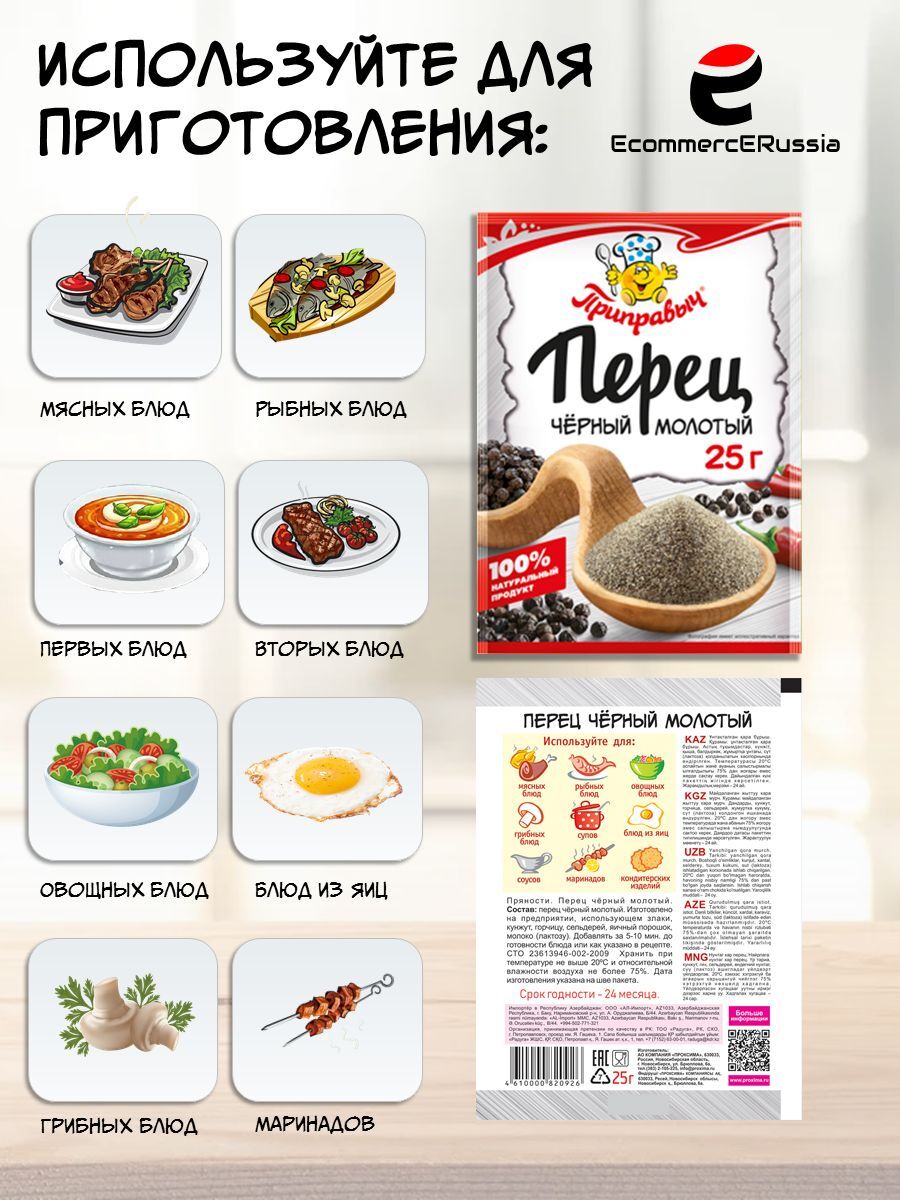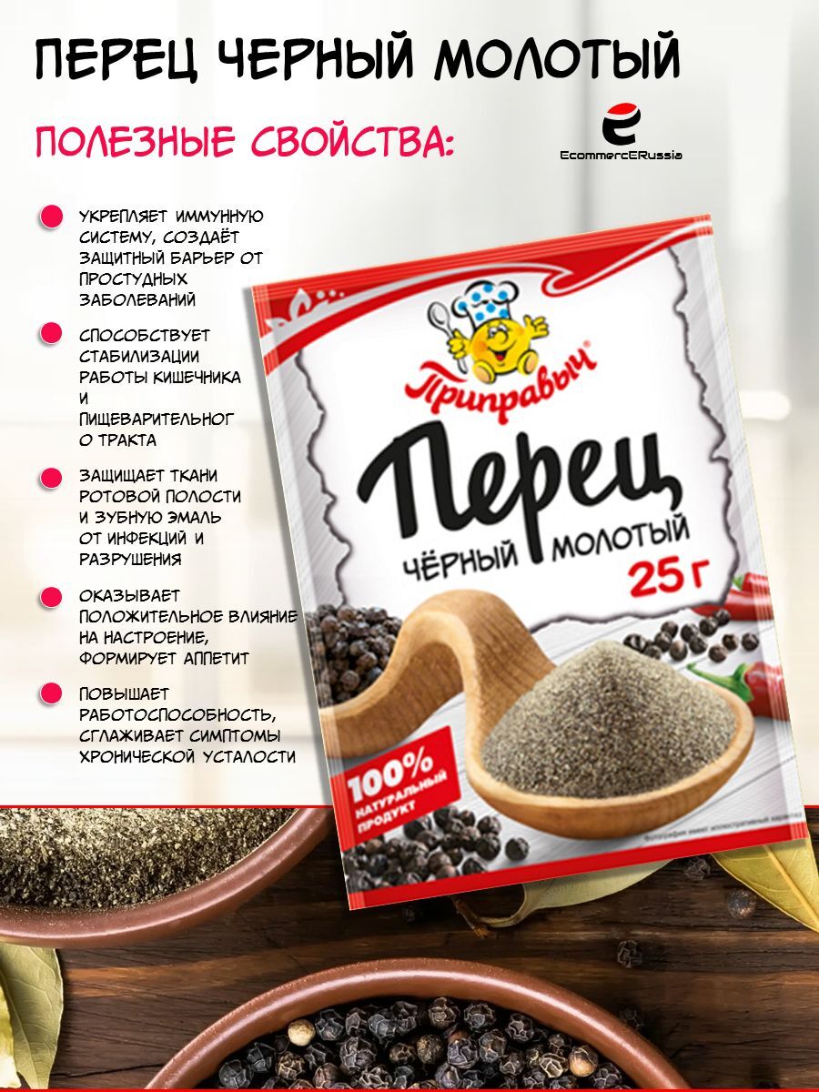 Перец молотый от Приправыч — это ваш надежный помощник на кухне, который не только разнообразит ваше меню, но и сделает каждое блюдо по-настоящему особенным. Выберите качество, выберите вкус — выберите Приправыч.