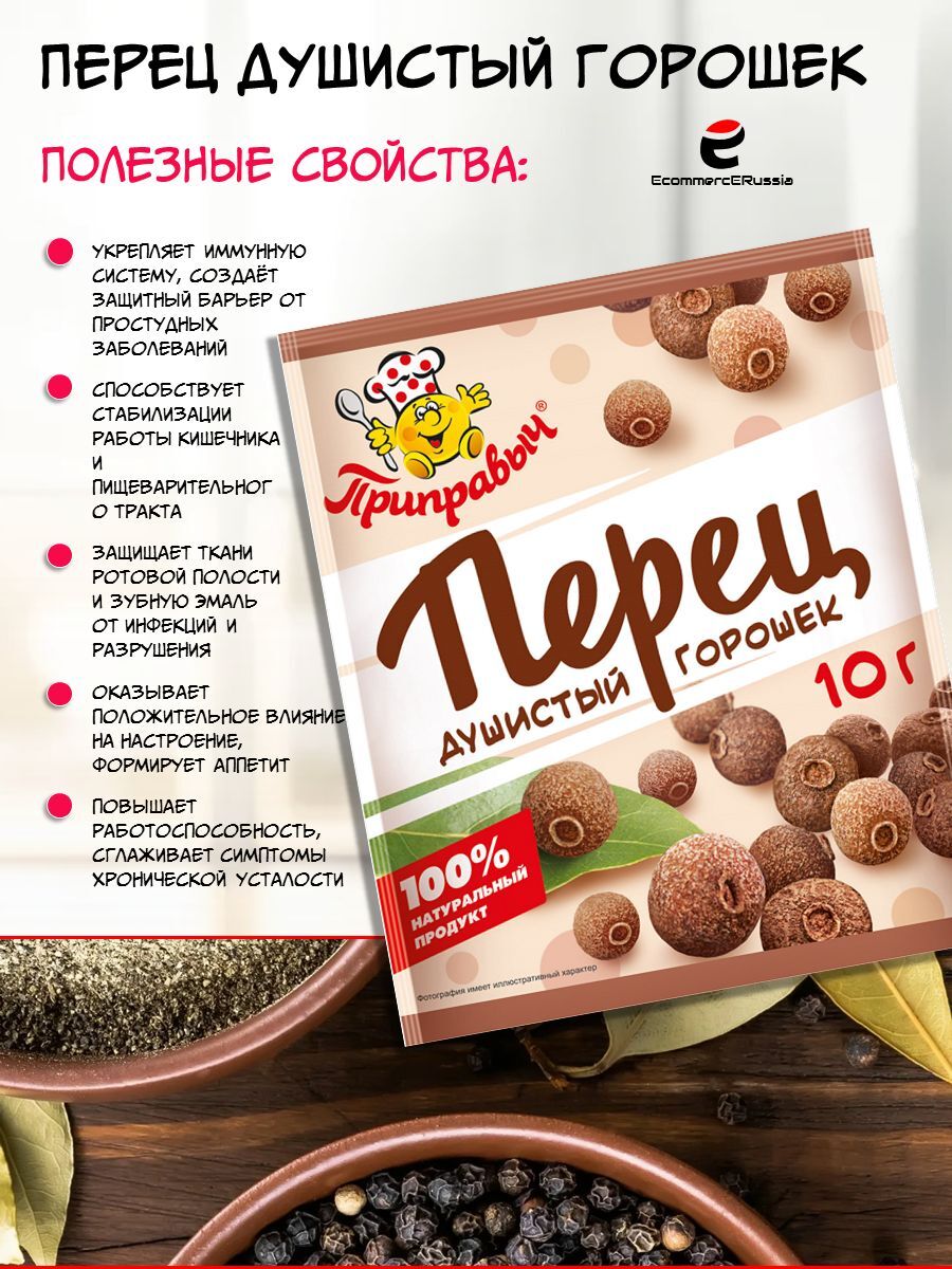 Специи и приправы — это важные составляющие качественной кухни, и душистый перец не исключение. Его использование в кулинарии позволяет не только улучшить вкус блюд, но и обогатить их полезными свойствами. Перец горошек "Приправыч" является высококачественным продуктом питания, который проходит строгий контроль на всех этапах производства, что гарантирует его свежесть и насыщенность аромата.