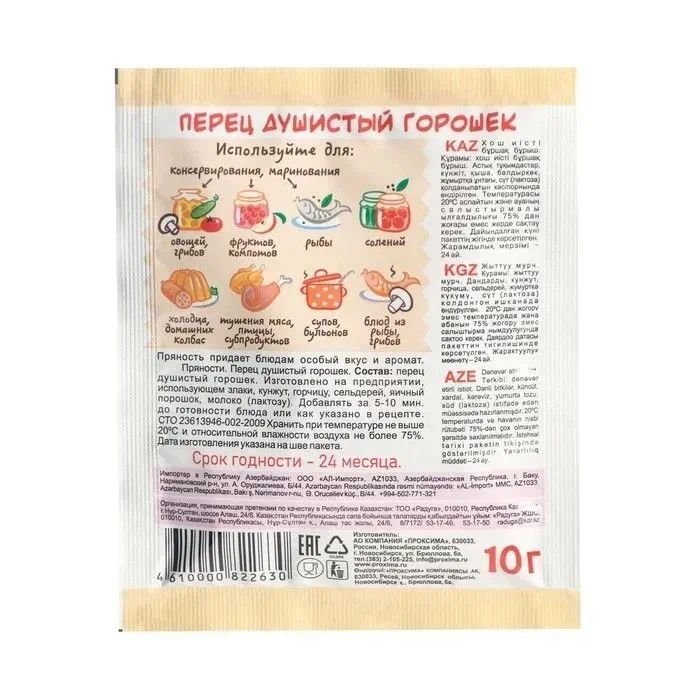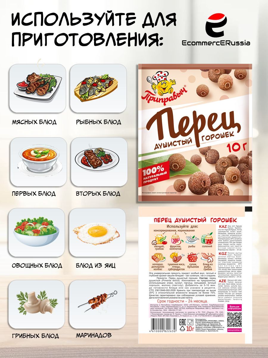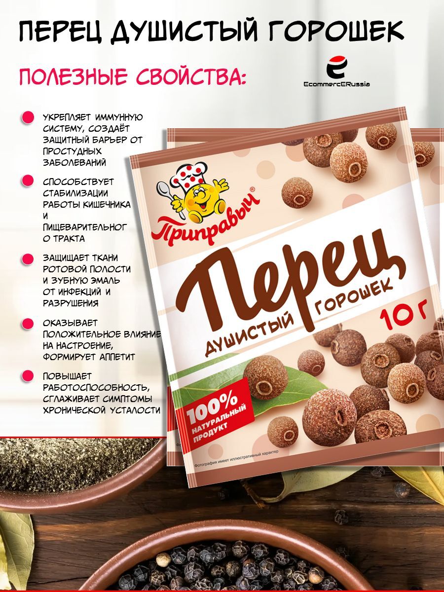 Специи и приправы — это важные составляющие качественной кухни, и душистый перец не исключение. Его использование в кулинарии позволяет не только улучшить вкус блюд, но и обогатить их полезными свойствами. Перец горошек "Приправыч" является высококачественным продуктом питания, который проходит строгий контроль на всех этапах производства, что гарантирует его свежесть и насыщенность аромата.
