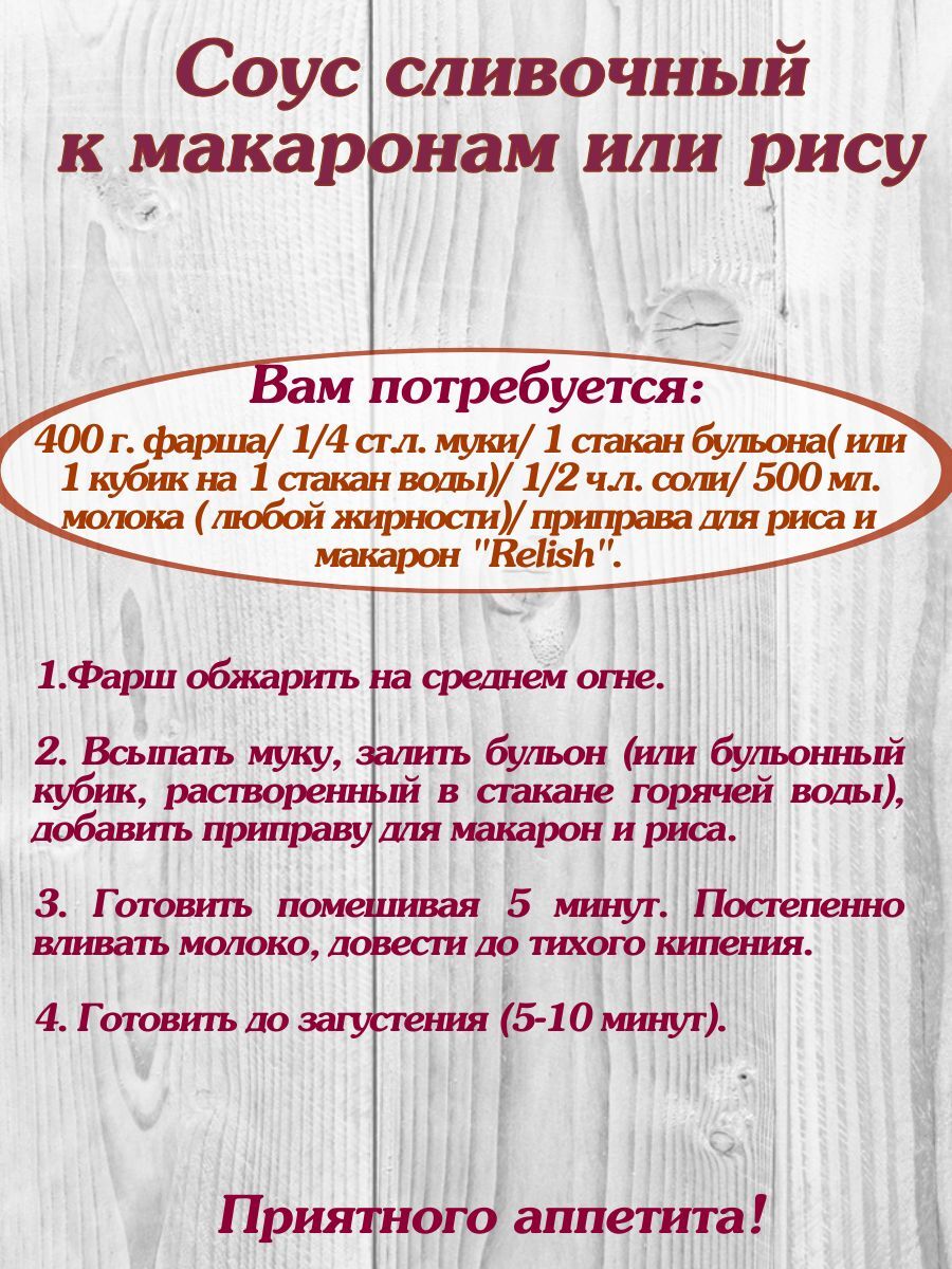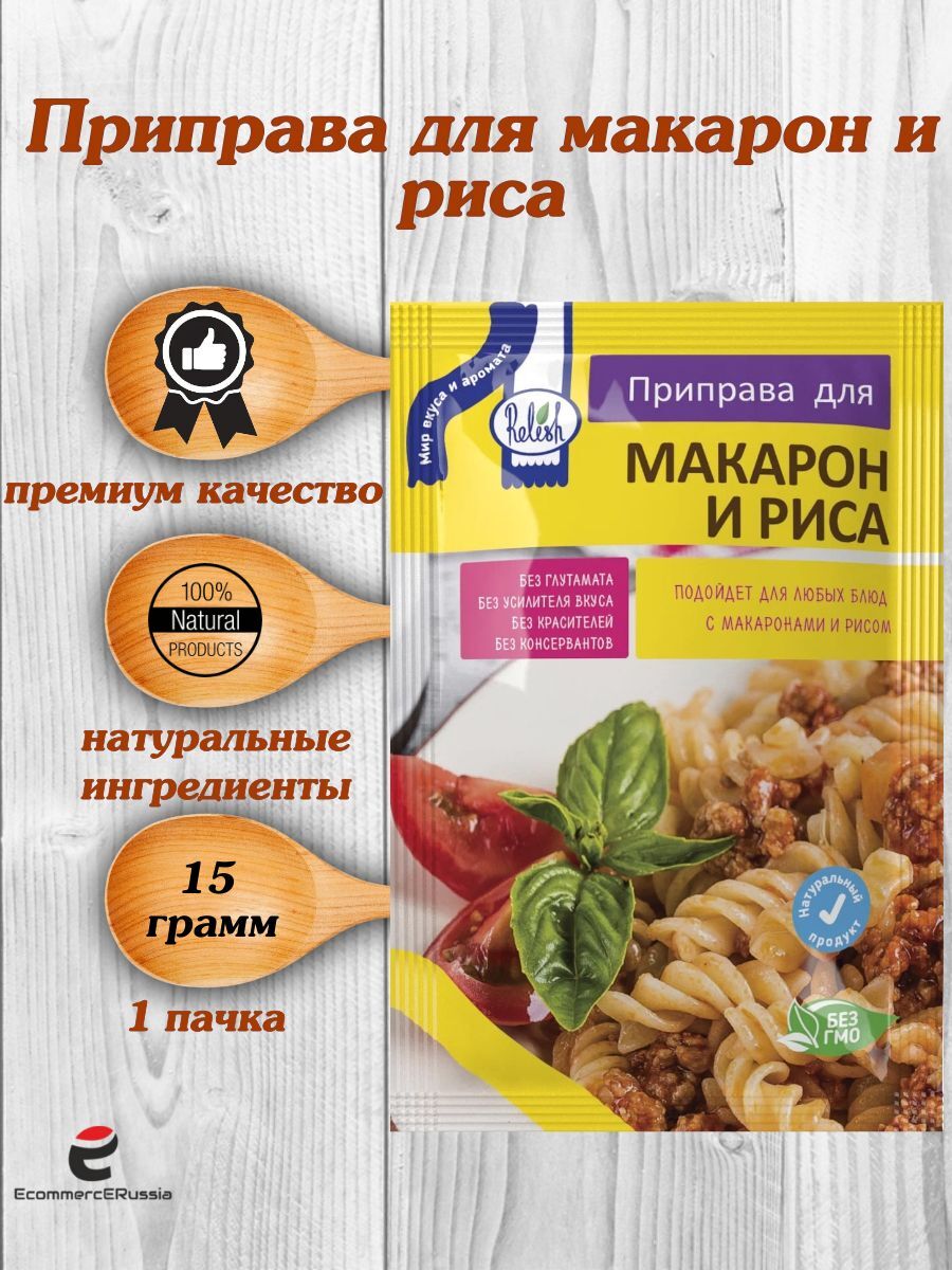 Подарите вашим блюдам насыщенный вкус и аромат с приправой Relish для макарон и риса! Специально разработанная для вторых блюд, эта приправа придаст вашим кулинарным шедеврам неповторимый вкус, который понравится даже самым требовательным гурманам.