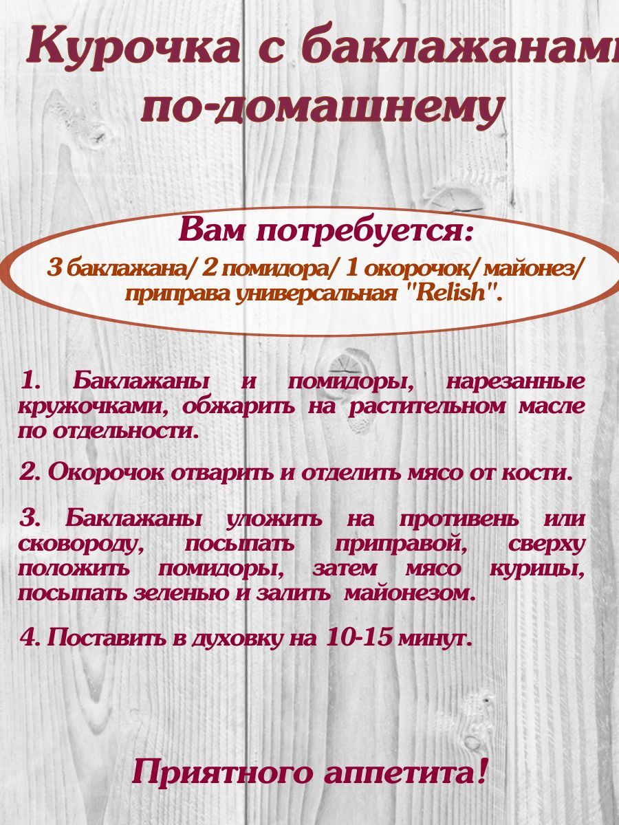 Добавьте приправу Relish в свою корзину сегодня и начните наслаждаться новыми кулинарными открытиями! Ваши блюда заслуживают этого уровня качества и вкуса.