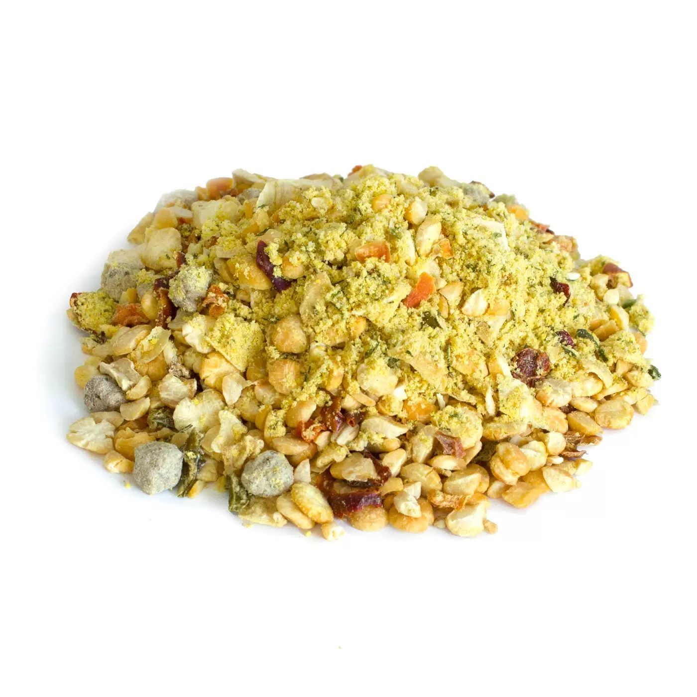 горох варено-сушеный;овощи сушеные (морковь;лук репчатый;корень пастернака;паприка;чеснок);соль;фарш варено-сушеный говяжий;загуститель(крахмал картофельный;крахмал кукурузный);порошок из жира топленого говяжьего;ароматизатор (Говядина);зелень сушеная(укроп;петрушка);антиокислители (Е300;Е320;Е321);усилители вкуса и аромата(глутамат натрия;гуанилат натрия;инозинат натрия);краситель(сахарный колер Е150с).