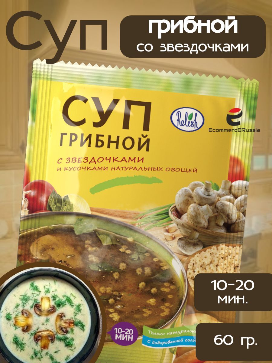Представляем Вашему вниманию уникальный продукт от Relish — грибной суп быстрого приготовления с оригинальными звездочками. Этот постный суп идеально подойдет для веганов и всех, кто ценит качественное и быстрое питание. Удобная упаковка в 60 граммов позволяет легко взять его с собой в поездку, дачу или приготовить после тяжелого дня.